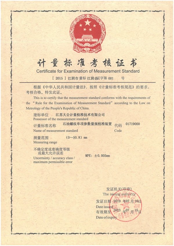 江蘇大公計量校準技術(shù)有限公司是石油螺紋工作量規、石油螺紋單項參數量規、特殊扣螺紋量規的檢測、校準機構!